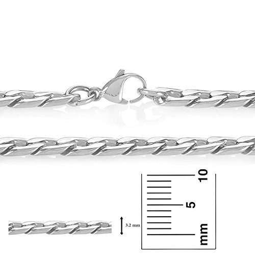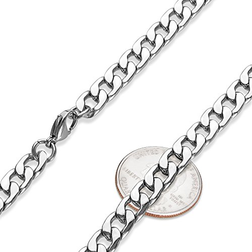 -. Feature : BONUS POLISHING CLOTH & VELVET POUCH - Includes a complimentary black velvet jewelry pouch and a dual-layered premium quality microfiber jewelry polishing cloth along with an instruction guide on how to clean, buff, protect & maintain a brilliant shine on your jewelry / POLISHED & DURABLE - This high polished stainless steel curb necklace is 8.6mm wide (3.2mm thick) that fastens with a sturdy lobster clasp / CLASSIC & TIMELESS - crafted to lay flat, this symmetrical style of subtly twisted curb links complements any look with a lustrous shine perfect to be worn solo, stacked or adorned with a charm / QUALITY CRAFTSMANSHIP - constructed of anti-tarnishing, scratch-resistant stainless steel, this chain features a non-plated finish that is luminously polished to a radiant shine / ORDER WITH CONFIDENCE - Backed by a Lifetime Warranty against all manufacturer defects in material and craftsmanship