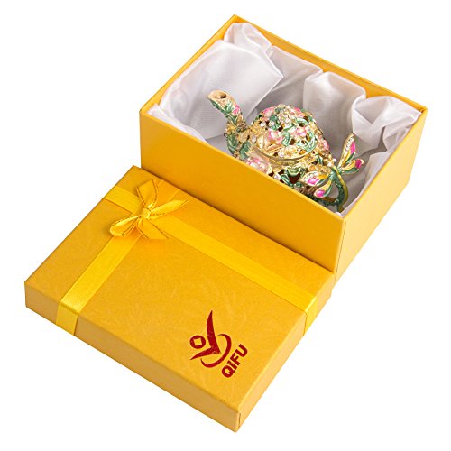 QIFU-Hand Painted Enameled Teapot Style Decorative Hinged Jewelry Trinket Box Unique Gift For Home Decor