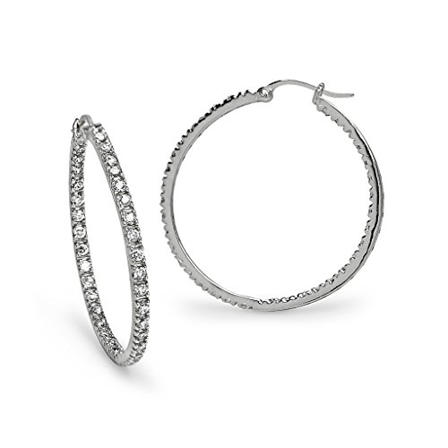 1.2 Inch Round Prong Set CZ Hoop Earrings