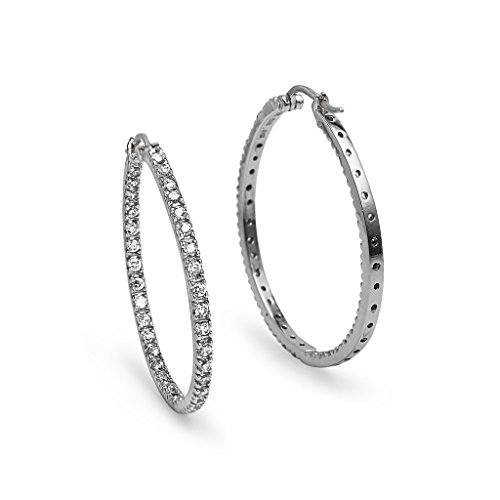 These round hoops feature prong-set cubic zirconia stones. They measure 2x30mm,and secured by post with snap-down closures.