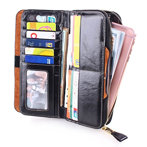 -. Feature : Material Description:Genuine Leather (Top grain oil wax leather). Our wallets use High-quality leather and with durable fabric lining , Shiny Classic gold hardware and Meticulous car suture. please check the product description, we will offer you a detailed briefing about oil wax cowhide. / Commodity Structure: 11 Credit card slots and 1 photo slot, 3 bill pockets, 1 zipper pocket. Can fit 5.5 inch smartphone, Can also put bills in it. / Characteristics: Zipper closure. the wallet appearance concise and atmosphere, Trifold design, very powerful. Large capacity Easily hold your Samsung Galaxy Note, Iphone6s, Iphone6 Plus. / Product dimensions: (L)7.67" x (W)4,33" x (H)1.26" inches ,and the weight is 4.9 ounces / Yafeige logo embossing. Soft leather , Handmade. 4 colors to choose from, each color is very beautiful and gorgeous. Travel, work, leisure, meetings are a good choice.