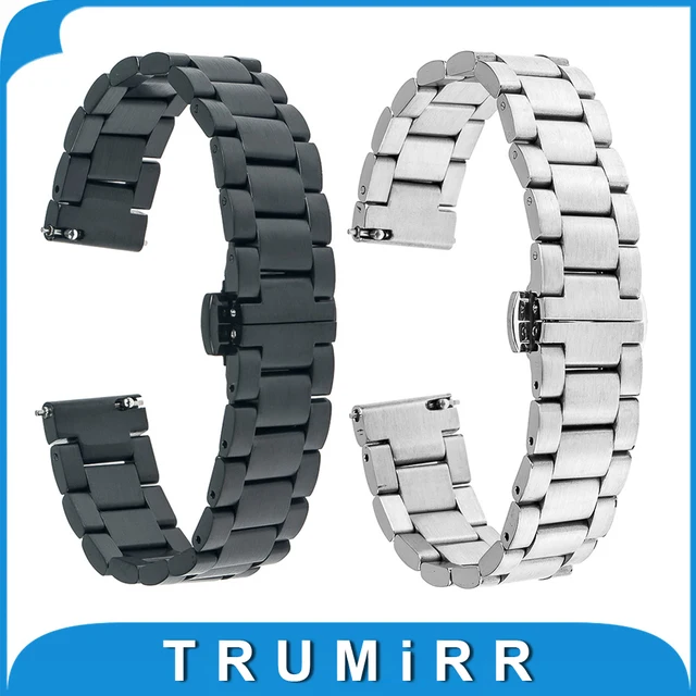 | [해외]16 미리메터 빠른 릴리스 스트랩 motorola moto 360 2 gen 42 미리메터 여성 2015 스테인레스 스틸 밴드 butterfly 버클 팔찌 블랙 실버 |