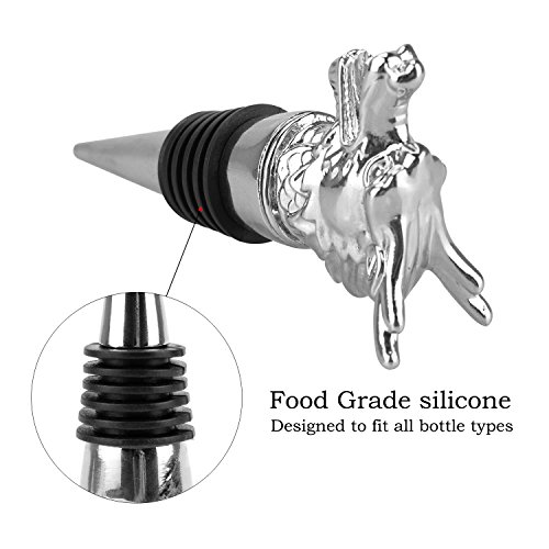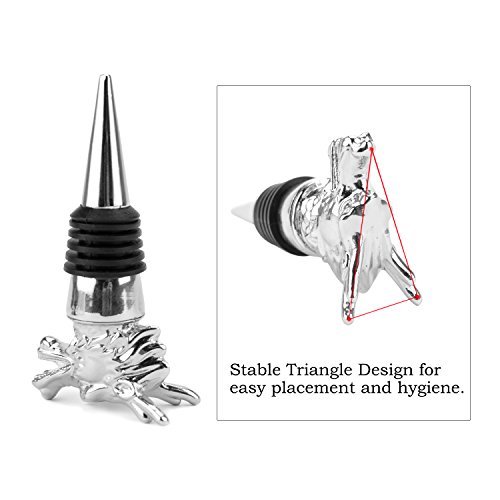 -. Feature : No Leaky Bums Wine Saver - provides an air-tight seal to prolong and preserve opened bottles of wine / Stable Triangle Animal Head Design Bottle Stoper - for easy placement and hygiene when not in use / Fit all Standard Bottle Types - Red Wine, White Wine, Champagne, Soda, Sparkling Liquor, Beer, Olive Oil, Cooking Oils, Vinegar.Easy to insert and to remove from the bottle ,simply press the stopper into the bottleneck / Food Safe Wine Bottle Stopper - made of durable zinc alloy material and food grade silicone material / Perfect Gag Gift for Wine Collector or Wine Lover - use the unique bottle stoppers to add a touch of superior elegance to the table and top off any dinner in style.They are sure to spice up your bar, kitchen,party,wedding and fridge with the unique appearence