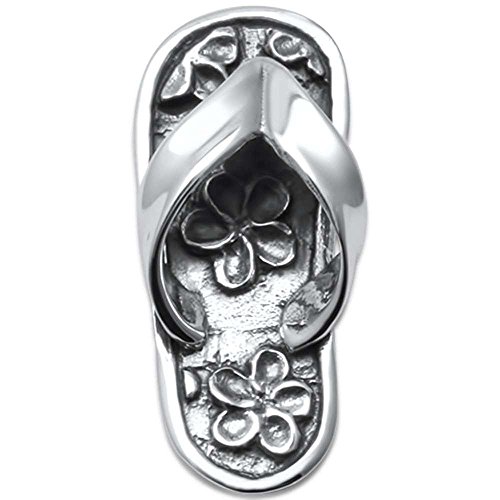 Brightt Plumeria Beach Flip Flop Design Sandal .925 Sterling Silver Pendant