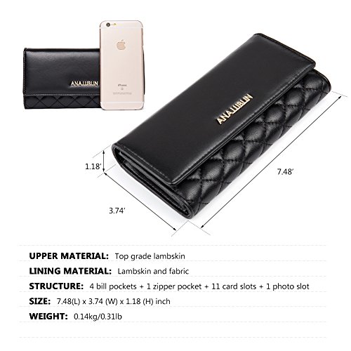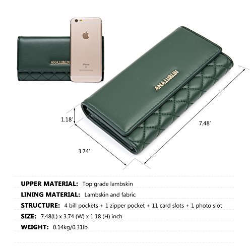 -. Binding : Apparel -. Brand : ANA LUBLIN -. Department : womens -. Feature : Item number:A3172051K / Material: Top grade lambskin leather outside, synthetic and fabric inside, and metal hardware. / Craft: Combining traditional hand-making craft with modern equipment, made by professional artisans with more than 20 years of experience. / Structure: 4 bill pockets + 1 zipper pocket + 11 card slots + 1 photo slot / Dimension: 7.48(L) x 3.74(W) x 1.18(H) inch, 0.14kg/0.31lbs -. ProductGroup : Apparel -. ProductTypeName : ACCESSORY -. Title : BIG SALE ! Lambskin Wallets for Women Ladies Credit Cards Long Wallet Purse