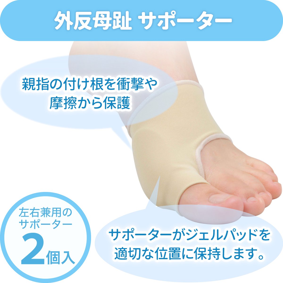 "Hallux valgus supporter thin type" is an auxiliary tool to protect your feet from rubbing the base of the thumb by hallux valgus, etc. and wearing long shoes.