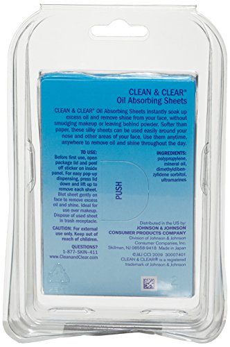 50-count package of Clean & Clear oil absorbing blotting sheets to soak up excess oil and remove shine