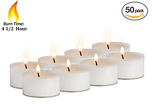 PREMIUM QUALITY: Our tealight candles are made from 100% paraffin wax and crafted in Europe by premier candle makers. With clear holders, they burn more beautifully than other tea lights.