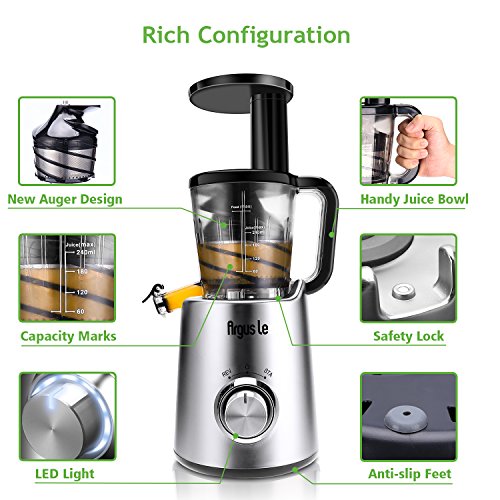 Product Overview It's time to have a full of healthy and nutrient body! Argus Le slow juicer is preserving more vitamins and enzymes for naturally nutritious, delicious fruits and vegatables juice, frozen treats and more.
