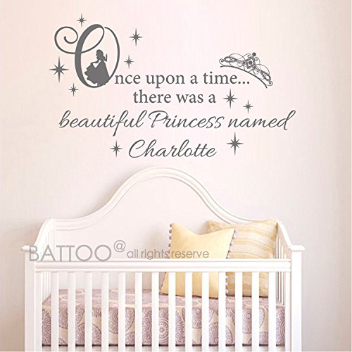 -. Title : BATTOO Name Wall Decal Girl P.R.Incess Crown - Once upon a time Vinyl Lettering Decal- Custom Decals Personalized Name Decor Nursery Baby Room Art