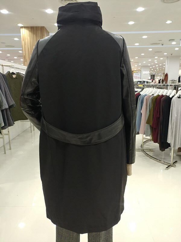 깔끔한 숄더라인에 여유있는 바디라인으로 편안한 아웃핏과 함께 백라인의 양가죽 벨티드디테일이 세련됨을 더해드리며