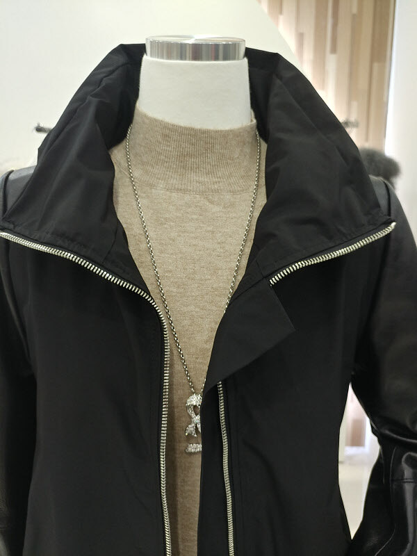 소매와 숄더라인에 양가죽 배색을 하여 고급스러움으로 인해 더욱 우아하게 다가오고