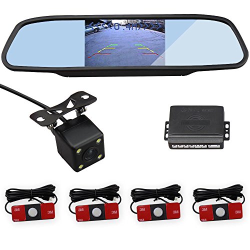 CAR ROVER Car Rear View Camera With 4.3 Inch Back View Mirror Monitor With Visible Original Flat Effect Parking Sensor 4 Black Sensors