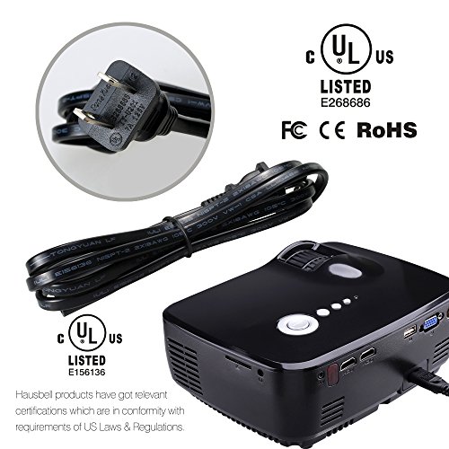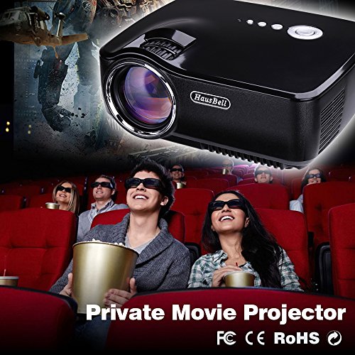 Projector, Hausbell LED Lumens 1500ANSI Luminous efficiency Portable Projector LED Mini Home Projector for Outdoor Indoor Movie/Home Theater/Game/TV Show (Black)