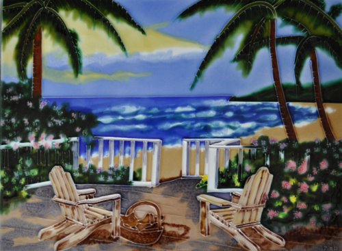 Continental Art Center AD-0167 12 by 16-Inch Two Chairs on a Deck with Ocean View Ceramic Art Tile