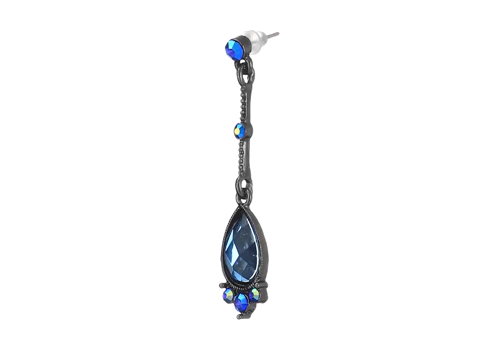1928 Jewelry Black Tone Blue Linear Teardrop Earrings