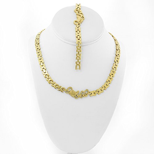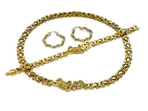 This classic "hugs and kisses" (XOXO) stampato set is made of high quality stainless steel.The hoop earrings add to a great finished set. Wear this versatile set with any outfit for any occasion. Combo set includes: Stainless Steel stampato set. Gold filled hoop earrings.Feature
