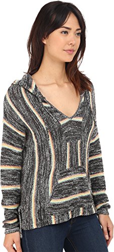 Oversized baja sweater with all over stripe, kangaroo pocket and hood with draw cord.