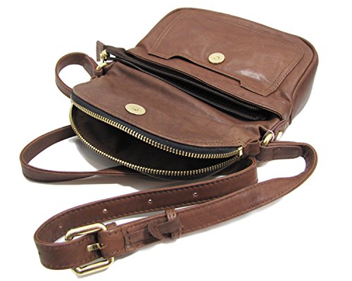 -. Binding : Apparel -. Brand : OMG Styles -. Color : Beige -. Department : womens -. Feature : Handle drop: Adjustable to 25". Body of bag: 8" L x 7.5" H x 2.5" W. / Made from soft genuine leather with gold-tone hardware. / Front slip pocket and back zip wall pocket. Flap zippered pocket. / Single adjustable cross-body strap. Magnetic snap closure. / Spacious zip top compartment. Interior slip pockets. -. PackageQuantity : 1 -. ProductGroup : Apparel -. ProductTypeName : BAG -. Size : One Size -. Title : Leather Cross-body Handbag