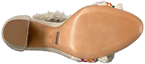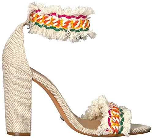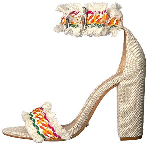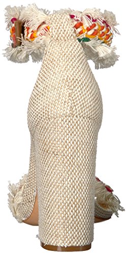 Product DescriptionBlock heeled sandal with a multi colored fringe toe and ankle strap0