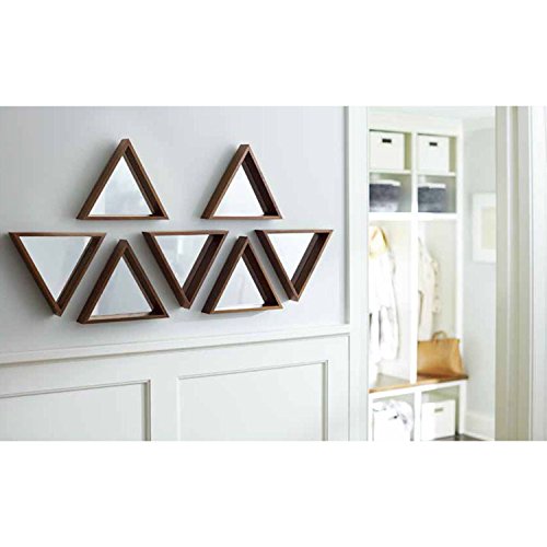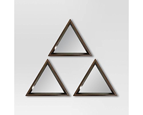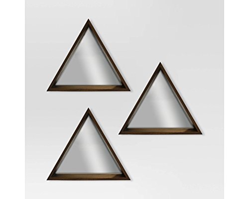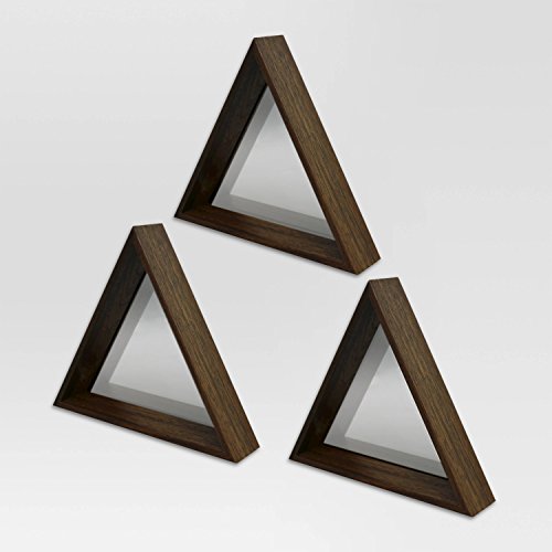 Project 62 Triangle Mirror Set of 3 Walnut Finish Baby Bathroom Beveled Decorative Framed Hanging Set of Small Wall Wooden Shaped Glass Kids Decor