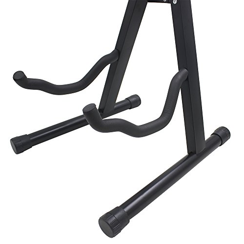 Description: - Folds flat for convenient storage and portability - Non-slip feet provide extra stability - Great for Bass, electric/ wooden guitar - A-Frame design with bracket arms - Material: Steel, sponge, plastic - Color: Black Size Chart: Approx. 39.5x31.5x30cm/ 15.55 x 12.4 x 11.81inch