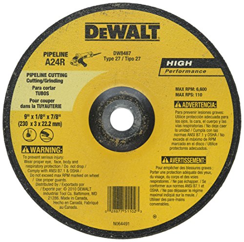 DEWALT DW8487 9-Inch by 1/8-Inch by 7/8-Inch High Performance Pipeline Wheel