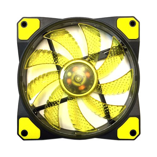 APEVIA CF12SL-SYL 120mm Yellow LED Ultra Silent Case Fan w/ 15 LEDs & Anti-Vibration Rubber Pads