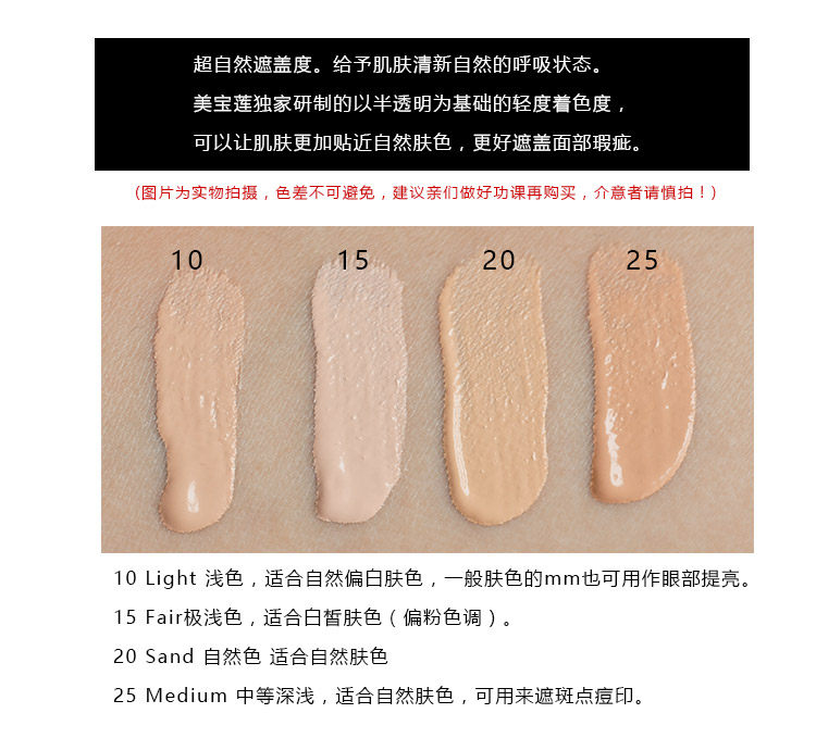 25 Medium 中等深浅,适合自然肤色,可用来遮斑点痘印。