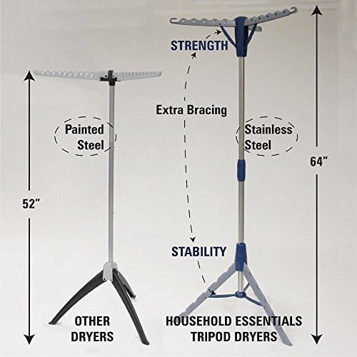 Household Essentials 5009-1 Collapsible Portable Indoor Tripod Clothes Drying Rack for Hanging Laundry | Silver and Blue