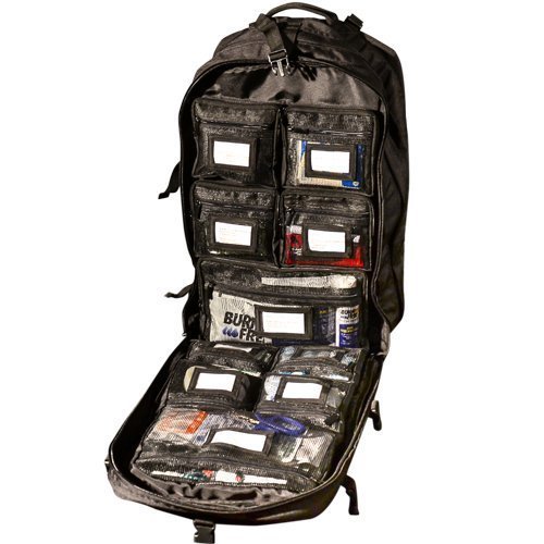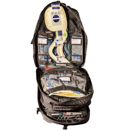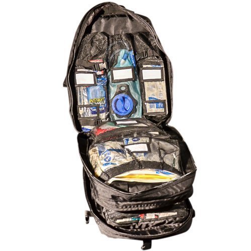 -. Title : Trauma Deluxe Backpack Fully stocked with life saving items like quick clot, tourniquet, wound seal, burn free and a lot more.