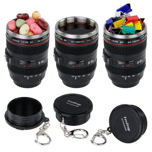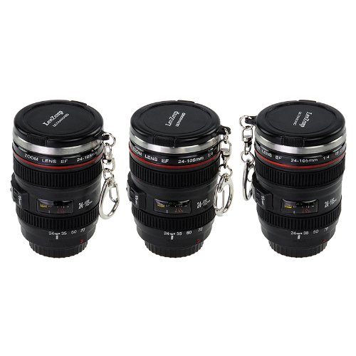 Fotodiox LenZcup EF Shotglass Set - Set of Three Camera Lens Mug Shot Glass Key chains, Mini Replica of Canon EF 24-105mm f/4L IS USM Lens (1:4), 1.5oz Stainless Steel Interior