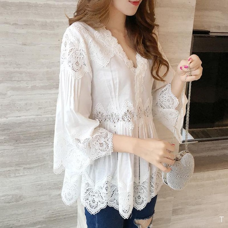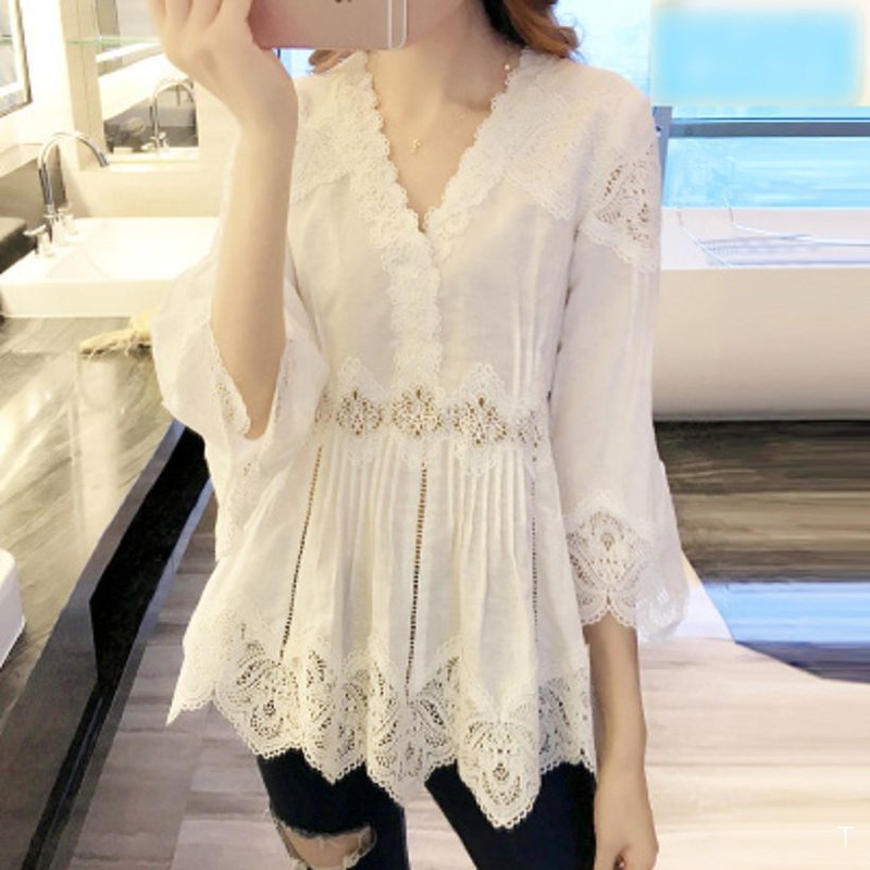 あちこちにレース刺繍をあしらった ボヘミアン風チュニック♡