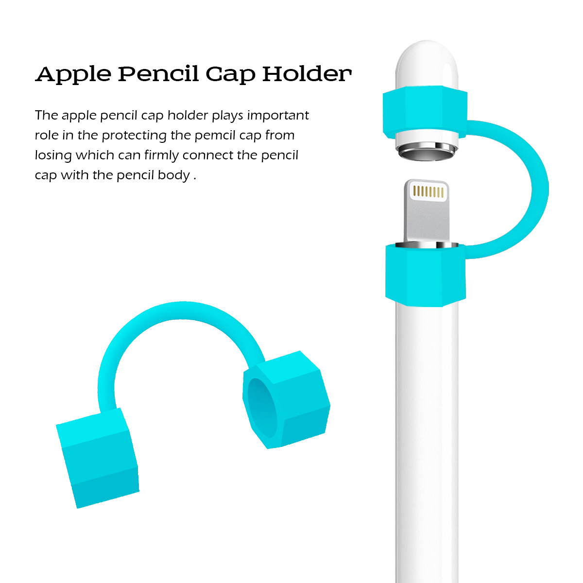 Protect your Apple Pencil with this Pencil Cap Holder at all times! The Pencil Cap Holder sports a simple and classy design.It holds your Apple Pencil cap snugly and attaches to body of the pencil and doesn't get in the way. You'll never waste time searching for the cap again when it comes time to charge your pencil. It offers an ideal way to protect your Apple Pencil wherever go.u0026nbsp;