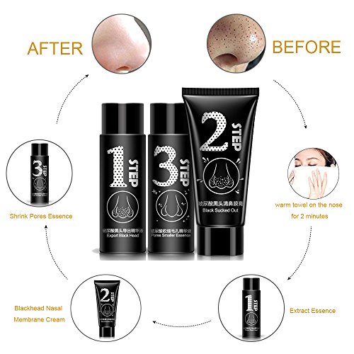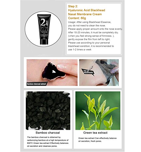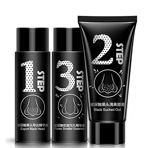 The Hyaluronic Acid Blackheads Pores Cleaning Trilogy Suits contains plant extracts and active bamboo charcoal formula, it is good for cleaning the pores of the blackhead and stubborn dirt;