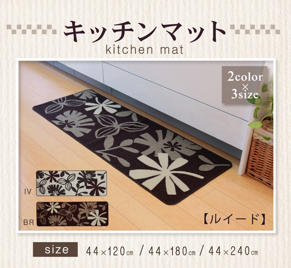【商品名】キッチンマット 花柄 『ルイード』 アイボリー 約44×180cm 滑りにくい加工