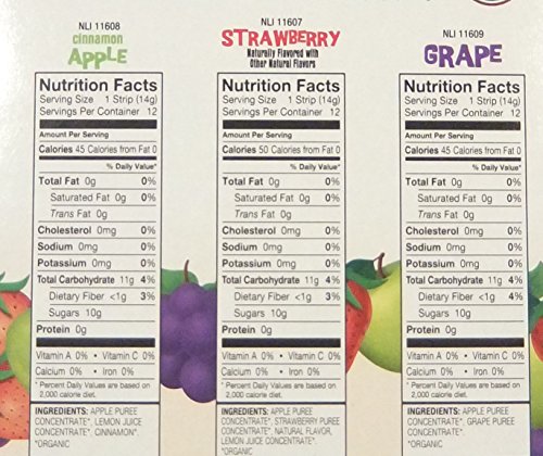 -. Feature : 1/4 cup of fruit per strip / 24 pouches of each flavor - Cinnamon Apple, Strawberry, Grape / Organic, Non-GMO & gluten free / All-natural, nothing artificial / No added sugar-all sugar comes naturally from fruit