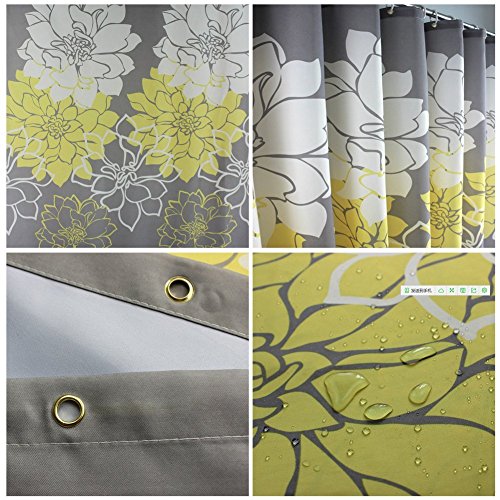 HOMEIDEAS Shower Curtain,with Hooks,Polyester Fabric,72x72 inch,Yellow,Gray,White,Floral