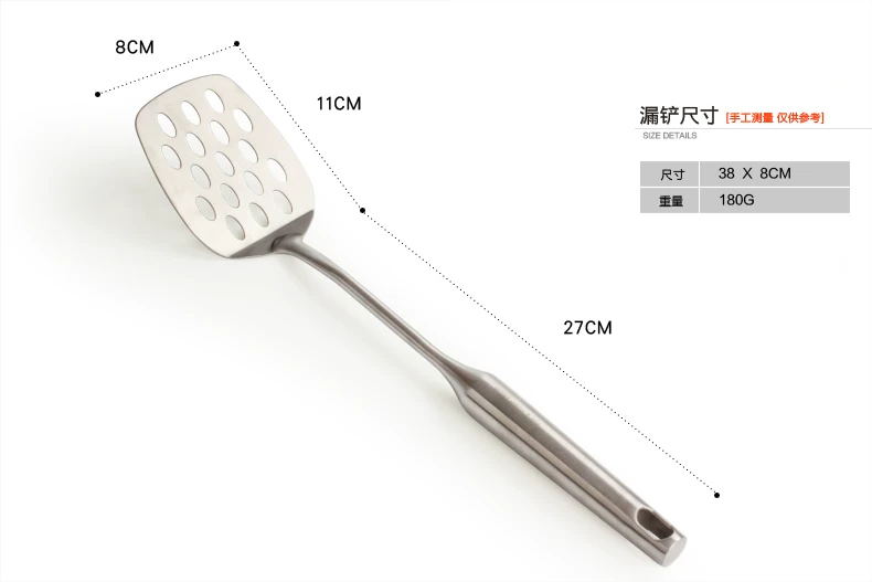加厚304不锈钢锅铲 一体炒菜平铲漏铲 煎蛋煎鱼铲平底铲