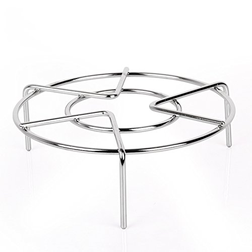 Three legs for standing steady. Stainless Steel material will not get rusty for a long time use. It is convenient for cooking, it also can save more time for you. This Steam Rack fit for the pots, pans or other cookwares