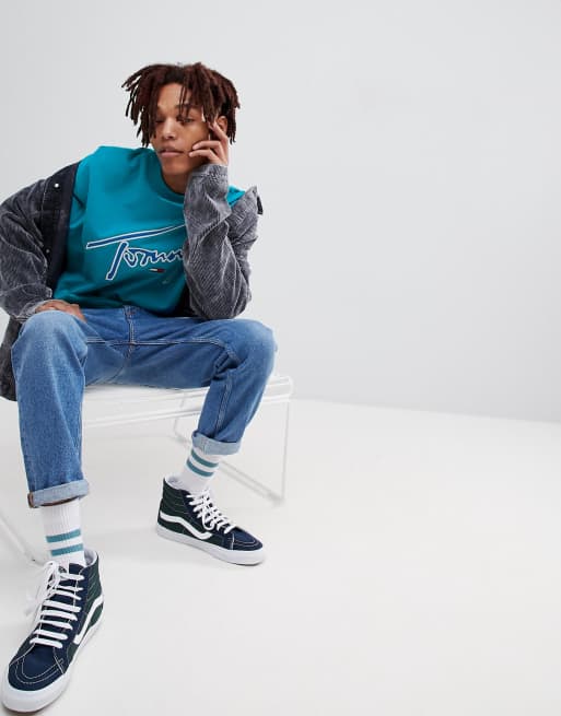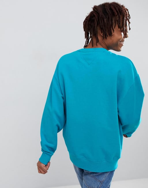 Tommy Jeans Signature Capsule Logo Front Sweatshirt Relaxed Fit in Turquoise Blue