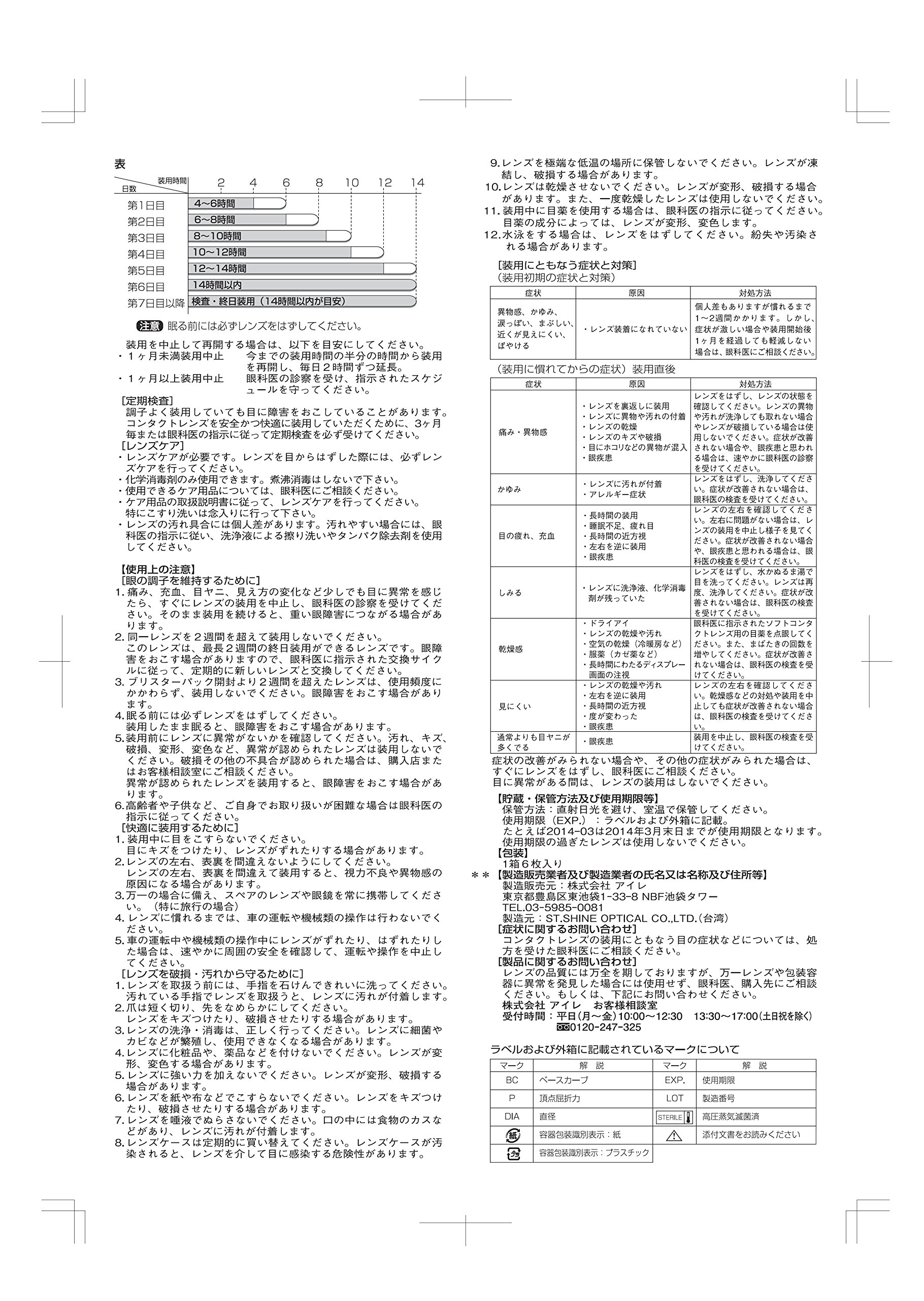 ● If you feel any abnormality, stop wearing and please take the examination of the ophthalmologist immediately.
