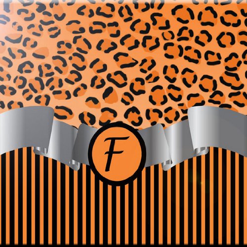 Rikki Knight RK-6intilec-2303 6" X 6" Letter "F" Orange Leopard Print Stripes Monogram Design Ceramic Art Tile