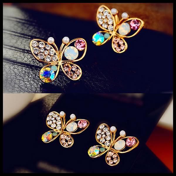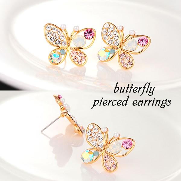 | バタフライカラフルラインストーンピアス♪両耳用 ゴールド 【ロンデルブラック アクセサリー 蝶々 蝶 ちょう ちょうちょ ピアスフック ピアス アクセサリー ゴールド gold pierced アクセ accessory 】 | |