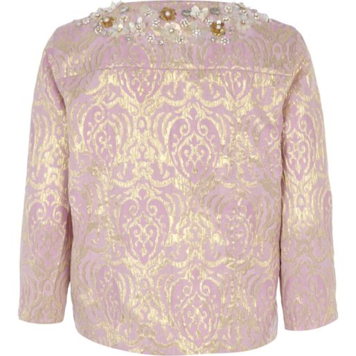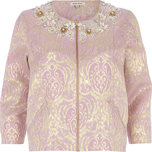 River Island PINK FOILED FLOWER EMBELLISHED JACKET