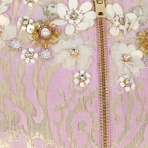 - Elevate any look with this retro-inspired pink foiled boxy jacket. Featuring a flower embellished neckline, zip through