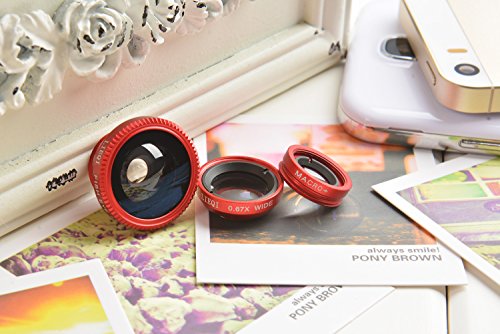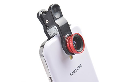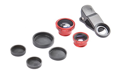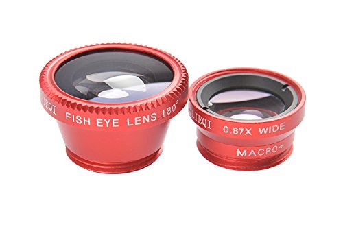 Detachable Lens Set for Mobile Phones Easy Clip-On LQ-001: Fish Eye 180°, Wide Angle 0,67x, Macro 6x-10x, for all types of mobile phones, tablets, pads and notebook PCs, color: red, Mod. LQ-001 Red