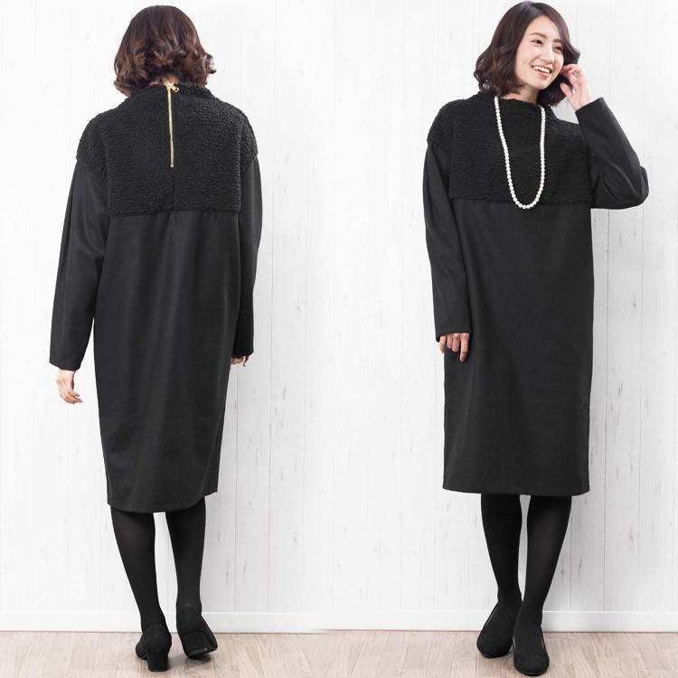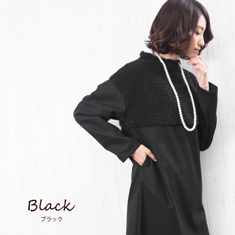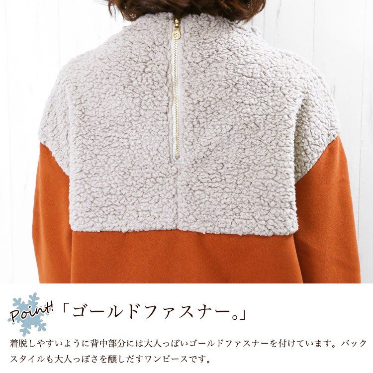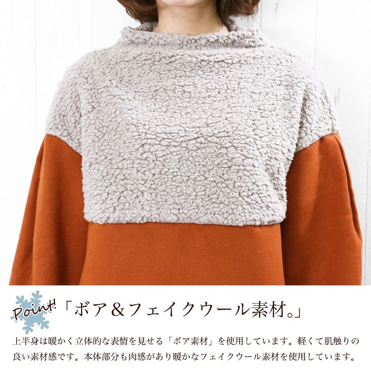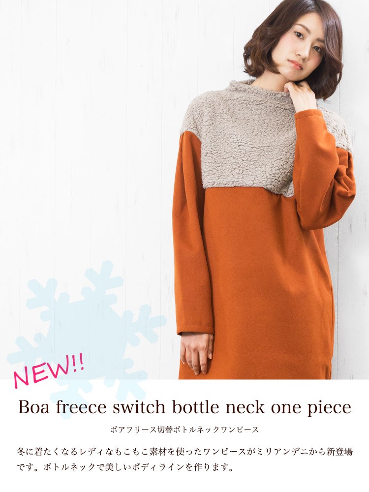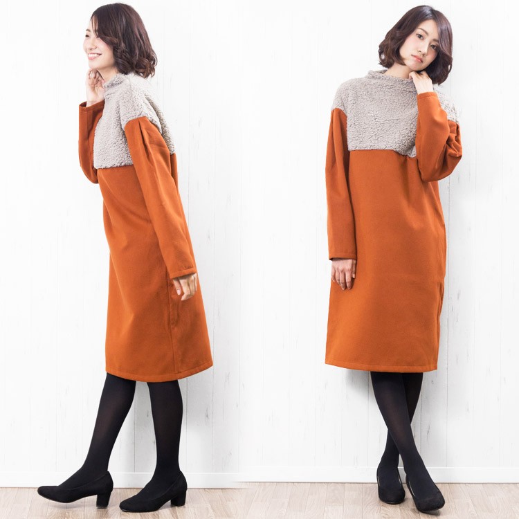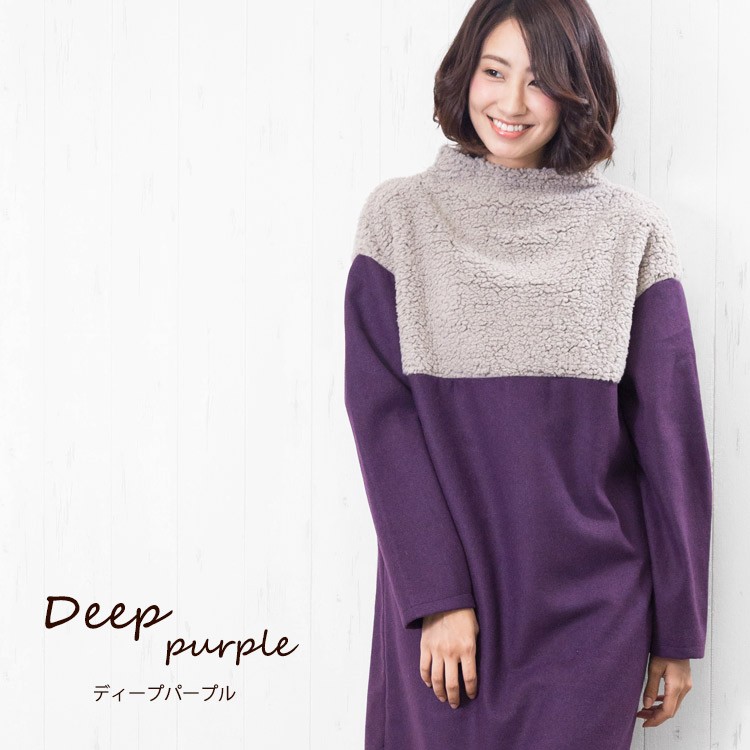 商品名:ボアフリース切替ボトルネックワンピース