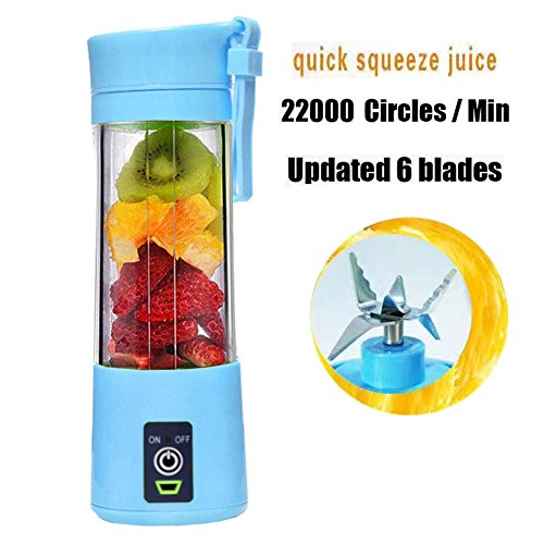 Studio : ZIBOWA Publisher : ZIBOWA Product Description Color: Blue, Enjoy your fruit juice anytime and anywhere.With this fruit juicer, enjoy fresh nutrient retention and wonderful leisure time Multi-function Juicer cup You can use it as water bottle; fruit and vegetable juicer; milkshake, smoothies and jam maker. Updated Version Portable Personal Blender, Six Blades in 3D for Superb Mixing. Portable multifunctional fruit blender Material: food grade AS, BPA free.Environmentally friendly. Specifications: Blade Material: 304 Stainless Steel Carry hand Material: Silicone Capacity: 350ml Weight: 381g Size: 75*75*232mm Battery Type: 2000mAh 3.7V Package contents: 1x mini juicer bottle 1x manual 1x usb charging cable Warning: 1. Rechargeable mini juicer- it requires to charge about 3 hours with the boxed usb cable before use. 2. Do not touch the bottle when temperature inside over 75 degrees. 3. Can't be put into microwave or dishwasher. Keep the charging pot from water while cleaning. 4. Not for child under 6 years old. How to use a mini juicer? 1. Prepare the fruit you like, cut them into 1.5cm. 2. According to your personal taste, add water or milk to 30%-60%, put the fruit in and make them lower than 80% of the bottle. 3. Press the button. It takes 1 min to 3 min for tasty juice base on the softness of fruit. Gently shake the bottle at 10 sec to make it more delicious. 4. Turn off the machine and enjoy the fresh and healthy drink.
