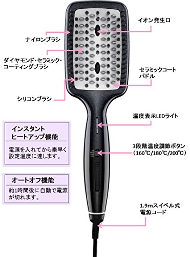 매일의 스타일링이 변하는 핫 아이런 브러시◆블로우의 마무리로 브러시에 간단 윤기나는 머리카락 스타일링◆모처(먼저)만 원 카루에 내츄럴 스트레이트◆인스턴트 heat◆다이아몬드 세라믹 코팅◆휘감겨 어려운 swivel식 코드 / ■ 사양 ■최고 온도:200℃ 온도 설정:3단계(200/180/160℃) 전원:AC100V(50/60Hz) 소비전력(약):44W 크기(약):폭27×(길이)깊이8×높이5.2cm(코드 포함하지 않아) 질량(약):410g(코드 포함한다) 전원 코드 길이(약):1.9m 부속품:화상 방지5개 손가락 글로브 /